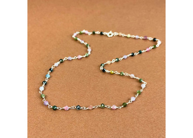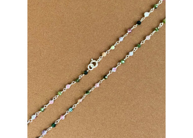 O colar de turmalina colorida em prata é uma peça vibrante que traz vitalidade, proteção e equilíbrio. Com 40 cm de comprimento, suas esferas de turmalina transmitem energia positiva, enquanto a prata potencializa suas propriedades de purificação, criando harmonia entre corpo e mente.