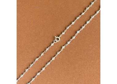O colar de labradorita em prata é uma peça que reflete a luz mística da lua. Com 40 cm de comprimento, suas esferas de labradorita despertam a intuição e protegem o espírito. A prata, com sua capacidade de conduzir energias, potencializa as propriedades da labradorita, criando uma harmonia entre proteção e autoconhecimento.